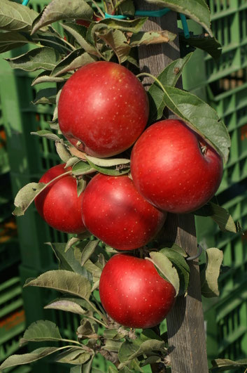 Der Säulenapfel 'Redcats' ähnelt mit seiner gelbgrünen Fruchtschale und seiner roten Deckfarbe der Sorte 'Gala' nicht nur im Aussehen sondern auch im besonders angenehmen süßsäuerlichen Geschmack des festen Fruchtfleisches. Für den ökologischen Anbau ist dieser Qualitätsapfel sehr zu empfehlen, da er sich gegen Schorf, Mehltau, Krebs und Blattläuse als widerstandsfähig erwiesen hat.